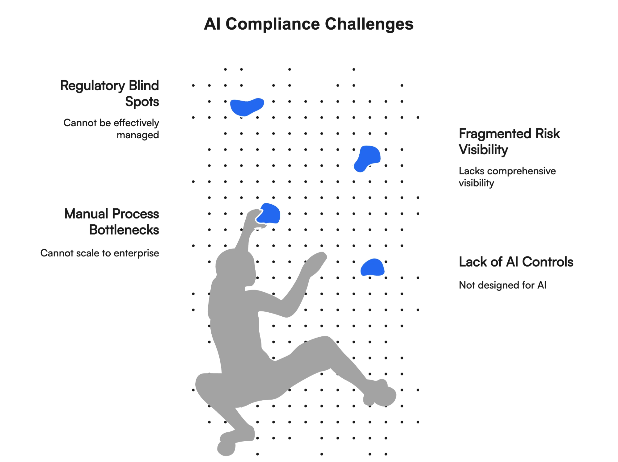 Many enterprises attempt to address AI compliance through existing IT governance frameworks or manual processes. This approach creates several critical vulnerabilities: